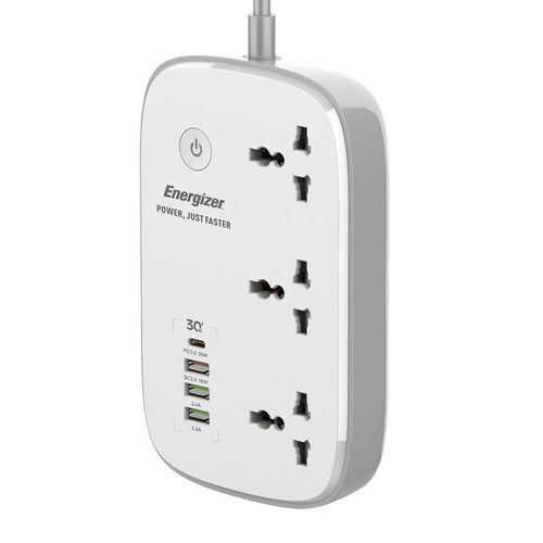 برند انرجایزر (Energizer) پس از تولید موفق کالاهای الکترونیک و ورود بازار ایران، به تولید لوازم جانبی از جمله سه راهی برق روی آورد و محصولات باکیفیت و قیمت مناسبی را روانهی بازار کرد. این چند راهی برق در ابعاد 112*178*30.7 میلیمتر و وزن 465.6 گرم قادر است خروجی یک پریز برق شهری را به 3 پریز یونیورسال (سه شاخه)، 3 پورت USB و یک پورت تایپ سی (Type-C) تبدیل کند و با انواع دوشاخه یا سهشاخههای بکار رفته در نقاط مختلف جغرافیایی سازگار است. همانطور که اشاره شد چند راهی برق انرجایزر مدل EPB2502EU به 3 پورت USB و 1 پورت تایپ سی مجهز شده است که به کمک آنها میتوان با اتصال انواع سیم شارژ یا شارژر، دستگاههای دیجیتال و موبایل را به سادگی شارژ کرد. این پورتها که از فناوریهای QC3.0 و PD3.0 پشتیبانی میکنند، دارای نرخ جریان ولتاژ زیر هستند: USB-A (Auto id output): 5V/2A (12W Max – Green) USB-A (QC output): 5V/3A , 9V/2A – 12V/1.5A (18W Max) USB-C: 5V/3A , 9V/3A – 12V/2.5A – 15V/2A – 20V/1.5A (30W Max – PD) همچنین سه پریز یونیورسال (سه شاخه) نیز دارای شدت جریان خروجی 10 آمپر و حداکثر توان خروجی 2500 وات خواهد بود. این محصول با طراحی سفید رنگ و با یک سیم به طول 2 متر ارائه شده است و با بدنهی کوچک و جمعوجور خود، جای چندانی را اشغال نمیکند. با چندراهی برق انرجایزر میتوانید از شر تبدیلهای سهشاخه به دوشاخه خلاص شده و به دهکدهی جهانی وارد شوید. از دیگر نکات مهم این محصول جنس بدنه آن است که از پلاستیک با کیفیت و مقاوم ABS ساخته شده و ضد اشتعال است.